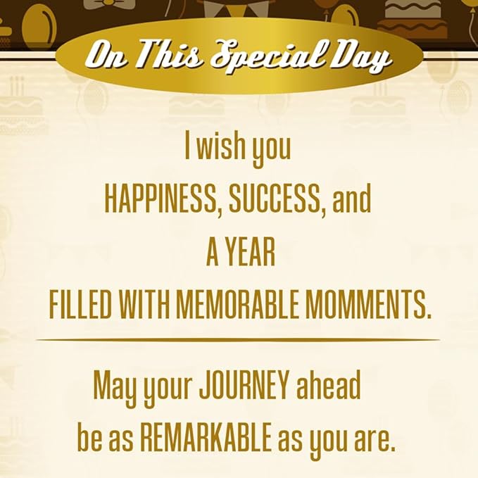 - Inside Message: On this special day I wish you happiness, success, and a year filled with memorable moments. May your Journey ahead be as remarkable as you are. Happy Birthday