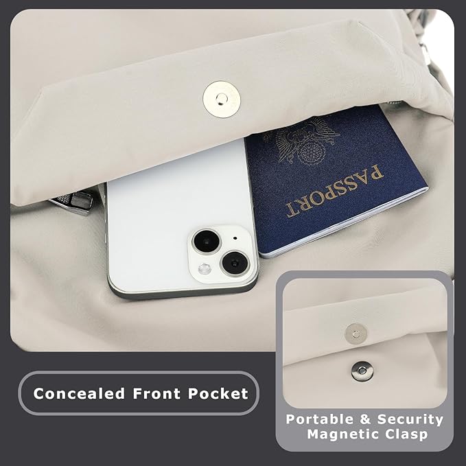 YGR Laptop Backpack for Women and Men, Waterproof Lightweight Travel Daily Rucksack Casual 15.6 inches Computer Bags for College, Beige