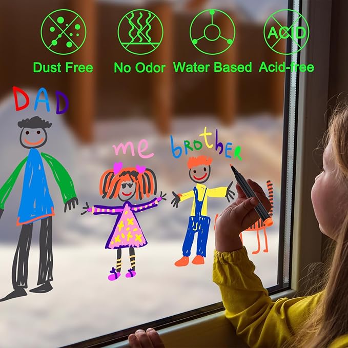 - Wet Erase:These non-toxic, water-based chalk markers can be erased easily by wiping the area with a damp cloth or paper towel making all paint to disappear without smudging or streaking.