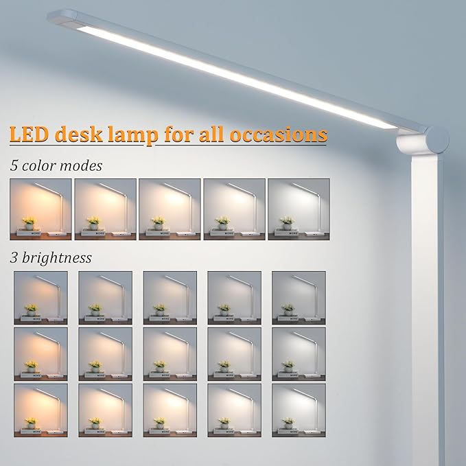 - 【TOUCH CONTROL DIMMABLE DESK LAMP】 the LED desk light has 5 light colors and 3 brightness levels. You can easily choose a variety of lights for painting, reading, writing, crafts, nail art, kindle reading lighting needs. easily adjust the brightness by touch. Cool white lighting great suit for working, studying, reading.