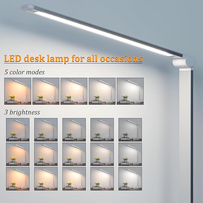 - 【TOUCH CONTROL DIMMABLE DESK LAMP】 the LED desk light has 5 light colors and 3 brightness levels. You can easily choose a variety of lights for painting, reading, writing, crafts, nail art, kindle reading lighting needs. easily adjust the brightness by touch. Cool white lighting great suit for working, studying, reading.