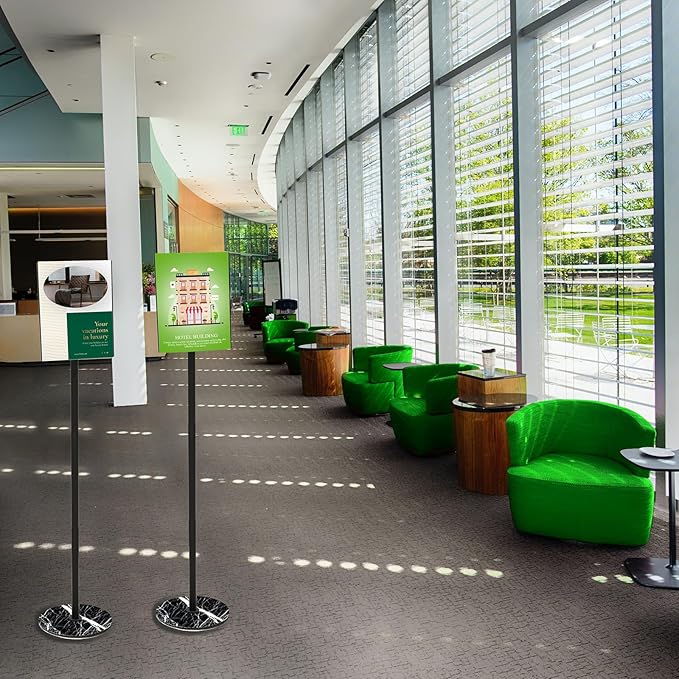 - 【Heavy-Duty Marble Base】: This sign holder stand features a premium marble base combined, the weight and robustness of the marble base ensure that the advertising stand remains securely positioned, whether in shopping malls, trade shows, hotel lobbies, or outdoor wedding venues; this design not only offers an excellent platform for displaying advertising content but also enhances the overall presentation with a touch of luxury and professionalism.