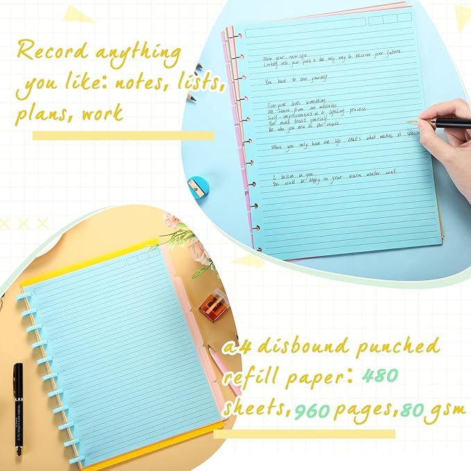 - Abundant Value Pack: you will receive 480 sheets of colored discbound refill paper, in 12 different colors, each with dimensions of about 8.5 x 11 inches, suitable for everyday study or work needs, our paper not only adds a pop of color but caters to volume demands effectively