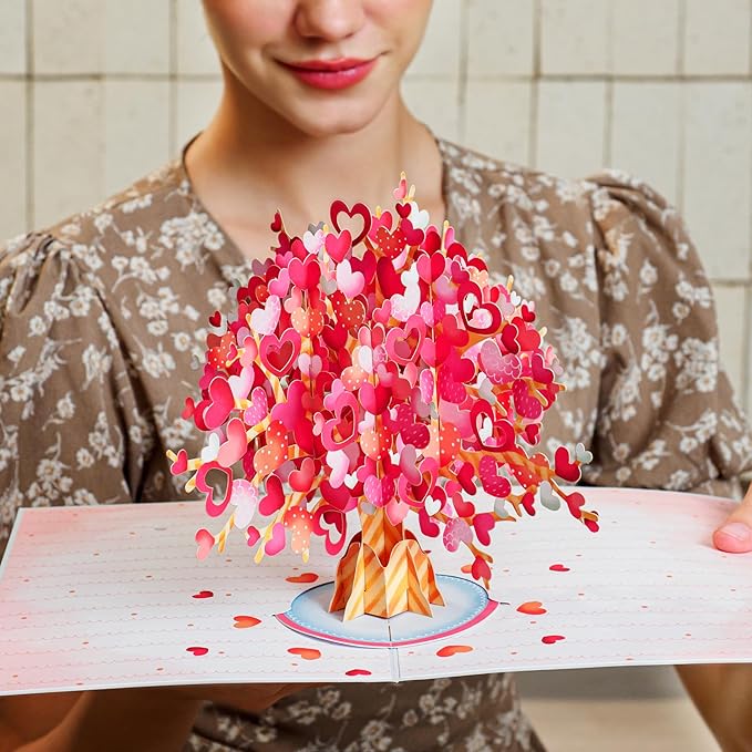 Paper Love 3D Heart Tree Pop Up Card, With Detachable Popup Keepsake, Gift for Birthday, Anniversary, All Occasion - Oversized 10" x 7" Cover - Includes Envelope and Note Tag