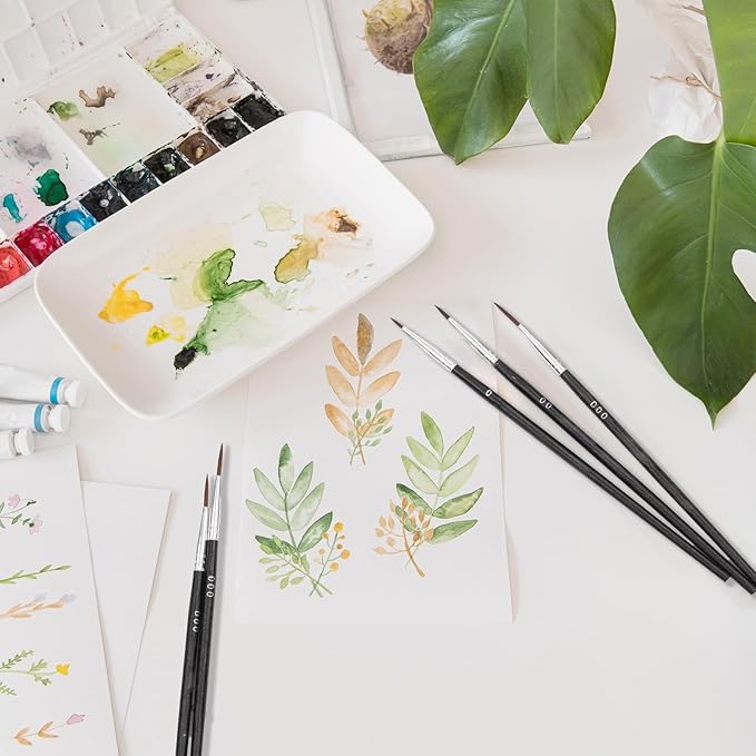 - 【ASSORTED SIZE LINER BRUSHES】The #0 tiny paint brush measures approx. 0.23” hair length, #00 miniature brushes with 0.5” hair, #000 liner paint brushes measure approx. 0.6” in hair length, thin and detail tips work well on a fine painting
