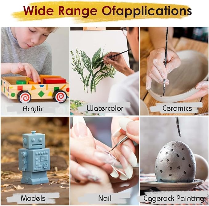 - 【VERSATILE SMALL PAINT BRUSHES】The multi-purposed detail brushes are ideal for watercolor, oil, gouache, acrylic painting, nail liner brush, face painting, miniature, model, craft art painting and more