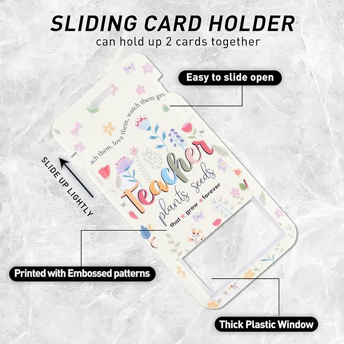 Teacher Lanyard with ID Holder, Floral Flowers Inspirational Quotes Cute Badge Holder with Beaded Adjustable Lanyard, Teacher Gifts for Women