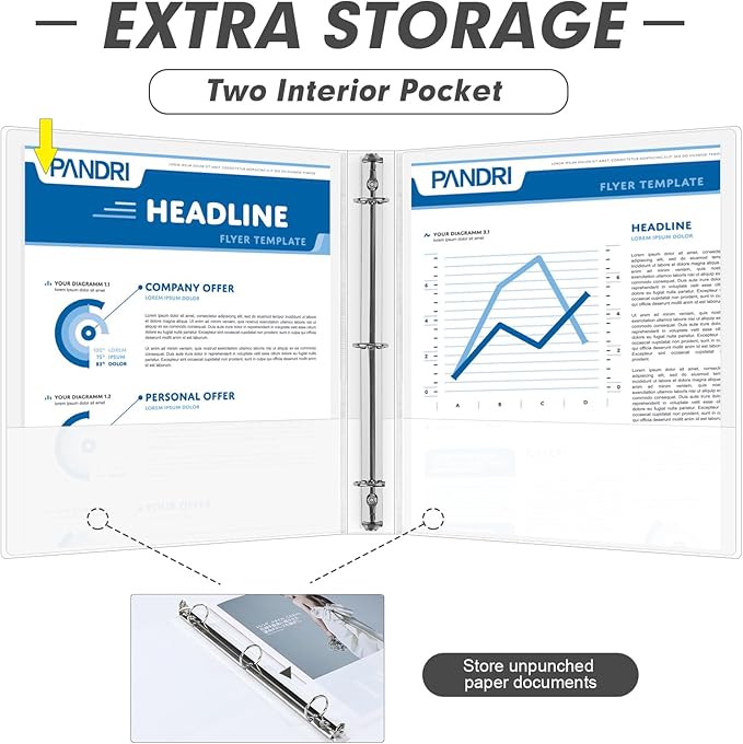 - LARGE CAPACITY: Store important documents and notes in 2 interior pockets for safe storage without having to punch holes