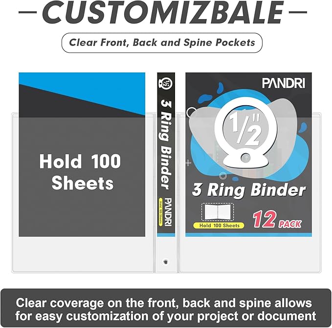 - CLEAR BINDER COVER: Clear coverage on the front, back and spine allows for easy customization of your project or document, making each folder unique. Binders for study and work will keep us organized