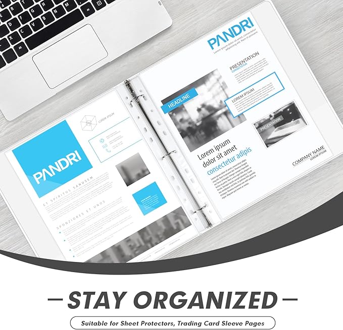 3 Ring Binder 0.5 Inch, PANDRI 12 Pack 0.5-Inch Binder Fits Letter Size 8.5'' x 11'' Paper, Versatile Binders for Office Home School, 2 Pockets, White