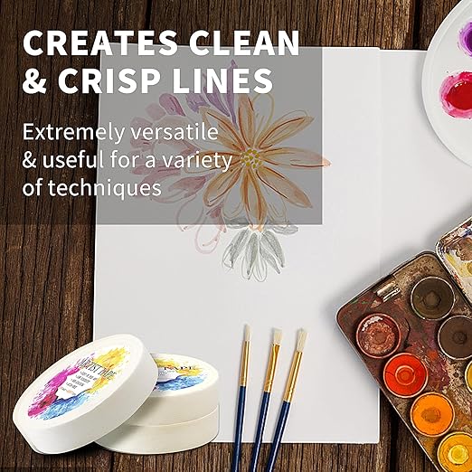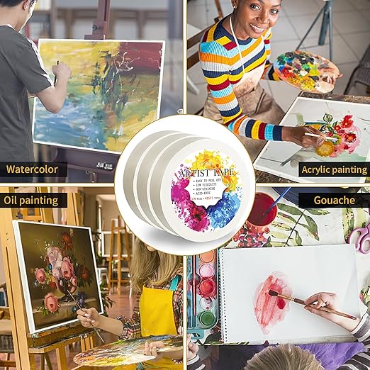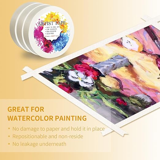 - 【Easy Peeling】The artist tape for watercolor paper is made of crepe paper, it can be torn apart by hand with gentle force. The white tape with low viscosity features that is easy to peel off without any damage to the watercolor paper. More efficient and convenient for painter. Please don't stick/peel this tape on/off paper with a intended strong strength. It is recommended to use in the temperature range of 8-38°C for the best effect. Not recommended for use at temperatures below 0°C. Too low temperature would make the adhesive of the tape low. Too high temperature would cause residue.