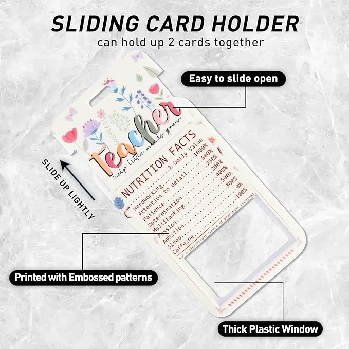 Teacher Lanyard with ID Holder, Floral Inspirational Quote Nutrition Facts Funny Badge Holder with Beaded Adjustable Lanyard, Gifts for Teachers