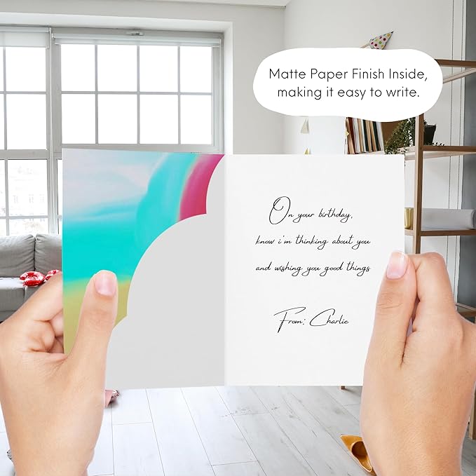 - SMALL CARD WITH A LARGE IMPACT - Card size is 5.5” x 4.25”. Inside of card features illustrations and additional space for you to write your own personalized message. Printed on premium thick cardstock with a smooth matte finish on the inside for easy writing. Each card comes with a white envelope and self seal. No need for licking!