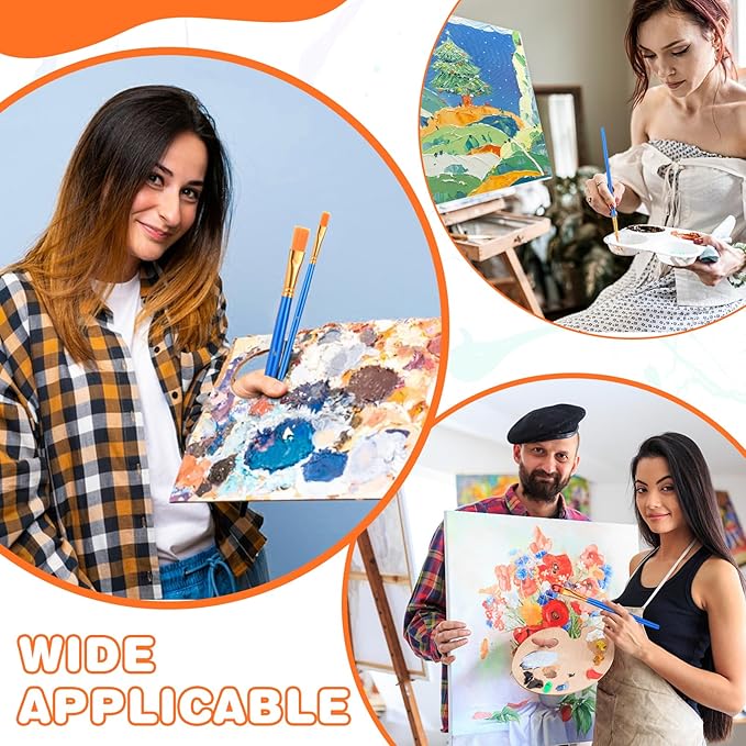 - 【High Quality Process】: Painting brush uses anti-falling nylon bristles, thick and soft hair, perfect spring back, rustproof solid nickel ring and strong handle. The short handle is smooth, perfectly better controls small details and always remains creative,acrylic paint brushes excellently completes your work.