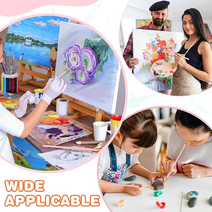 - 【Applicable scene】: This paint brush is suitable for all media including acrylic, watercolor, enamel, oil paint, vinyl, and watercolor pigments, suitable for painting on models, rocks, ceramics, leather, gypsum, etc.Professional paint brushes can be used in paintings such as oil painting, acrylic painting, human body, plants, miniature, models, ceramics, and arts and crafts.