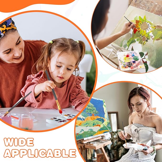 - 【Applicable scene】: This paint brush is suitable for all media including acrylic, watercolor, enamel, oil paint, vinyl, and watercolor pigments, suitable for painting on models, rocks, ceramics, leather, gypsum, etc.Professional paint brushes can be used in paintings such as oil painting, acrylic painting, human body, plants, miniature, models, ceramics, and arts and crafts.