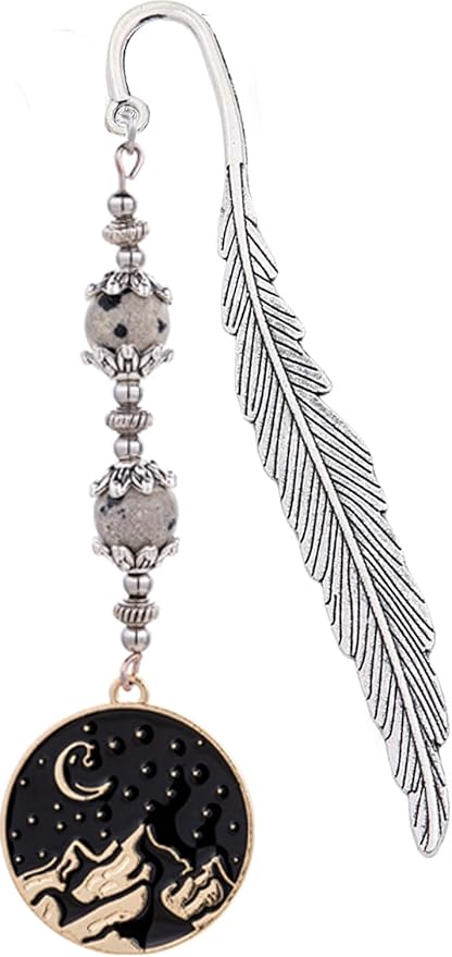 - ✦ HIGHQUALITY MATERIAL: This metal bookmark, made of durable metal, natural stone beads, adorned with charms representing the famous elements and places of the saga, great gifts for book lovers.