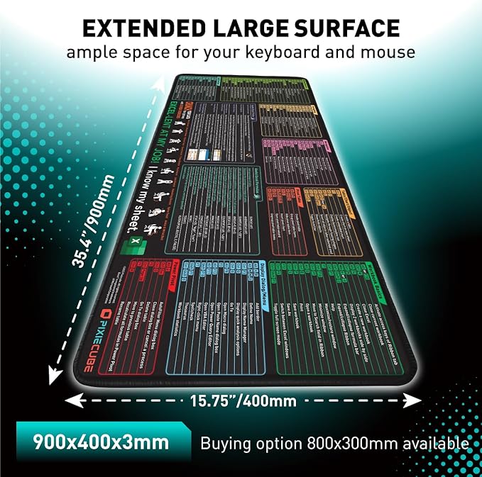 Excel Shortcut Keys Mouse Pad - Extended Large XXL Cheat Sheet Gaming Mousepad | PC Office Spreadsheet Keyboard Mat | Non-Slip Stitched Edge