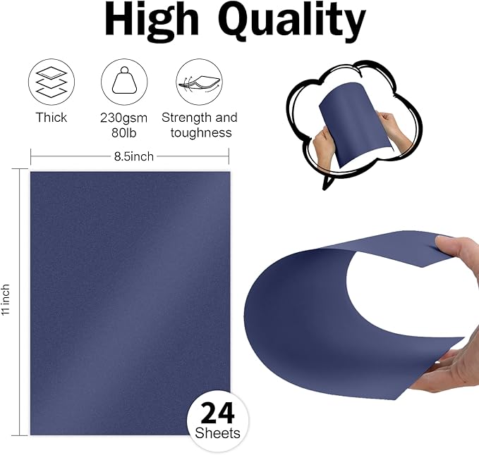 - Paper Dimension: Each package includes 24 sheets of navy blue paper, measures 8.5 x 11 inches in size, 230 grams in weight