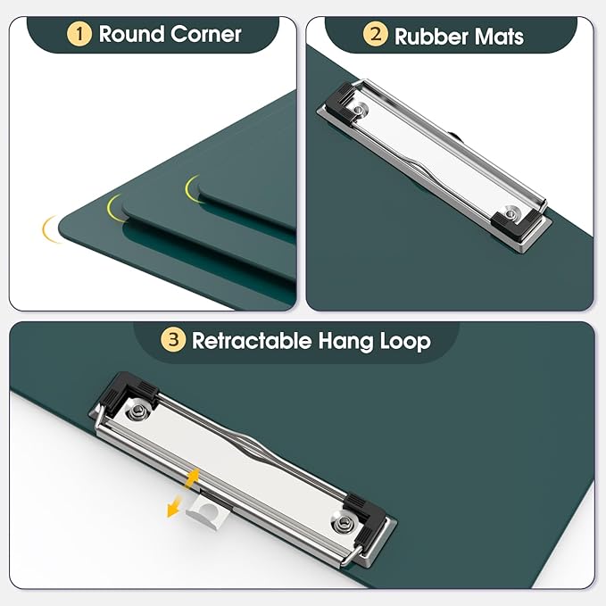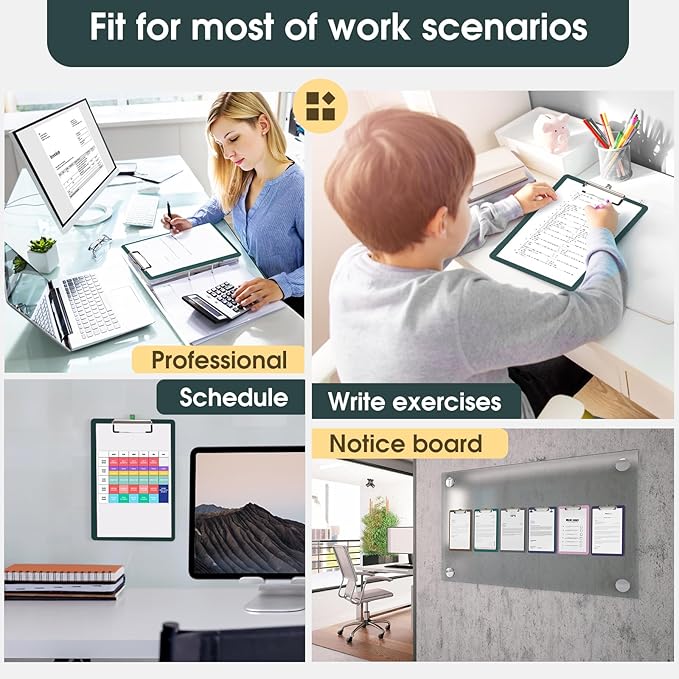 - Strong Plastic Clipboard: Our clip board is made of strong and high-quality plastic material, Making them very strong, Not easy to break, Clipboards with high-gloss surface and sturdy base. Cleanable and waterproof
