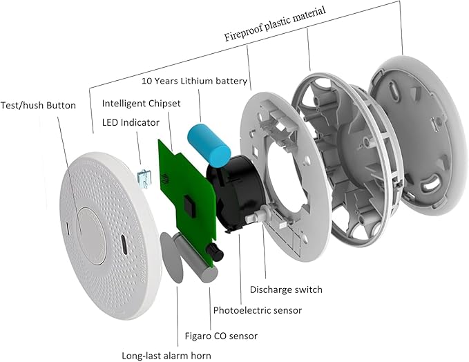 - 5:10-Year Battery: This smoke alarm provides 10 years of continuous power with a built-in lithium battery, saving on energy while remaining eco-friendly; saves you from constantly having to change batteries; an end-of-life signal will let you know when it's time to replace the unit for safety