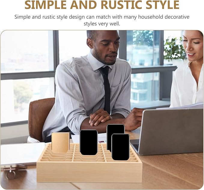 Toddmomy Cell Phone Storage Box 24-grid Wooden Cell Phone Holder Desktop Organizer Storage Box for Classroom Office