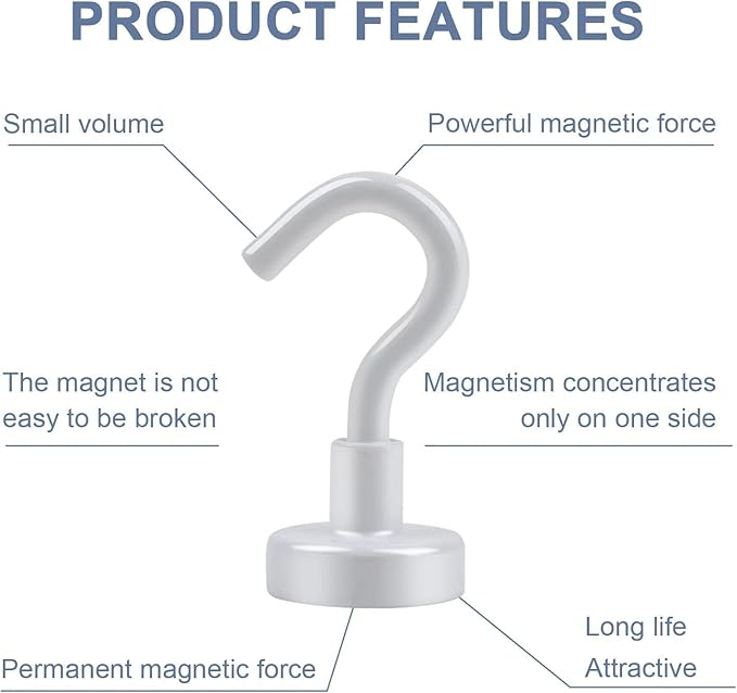 - 【Versatile Use】 Rare earth neodymium magnet hooks are ideal for hanging various household articles, office material etc., great for organization. They are also widely used in cruise, fridge, kitchen, locker, workplace office, garage, indoor, outdoor and anywhere there is iron or steel. No drilling holes, No sticky residue, No bolt or screws; Easy to install or remove and reusable.