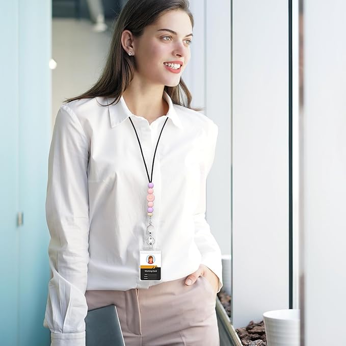 - Safe and Durable Material: Quprofa badge lanyards are made of high-quality black or gold satin nylon ropes, the material is soft, smooth and comfortable to touch;The silicone beads and ABS Card Holders are strong, lightweight, safe and skin-friendly;The transparent ID Holders are made of high-quality PVC material, which are waterproof and wear-resistant