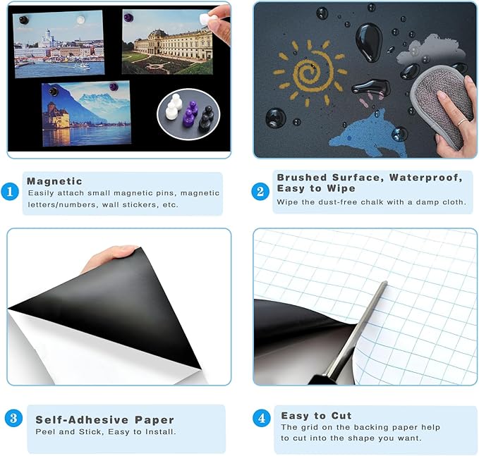 - Magnetic Receptive Surface: Our self-adhesive chalkboard sticker transforms any smooth, non-textured surface into a creative, large magnetic board or wall. This magnetic wall decal works great with Melissa & Doug wooden magnets, map puzzles, and other foam magnets. It’s also an ideal alternative to magnetic easels or magnetic paint. You can even stick it to the back of a door to create a travel photo wall.