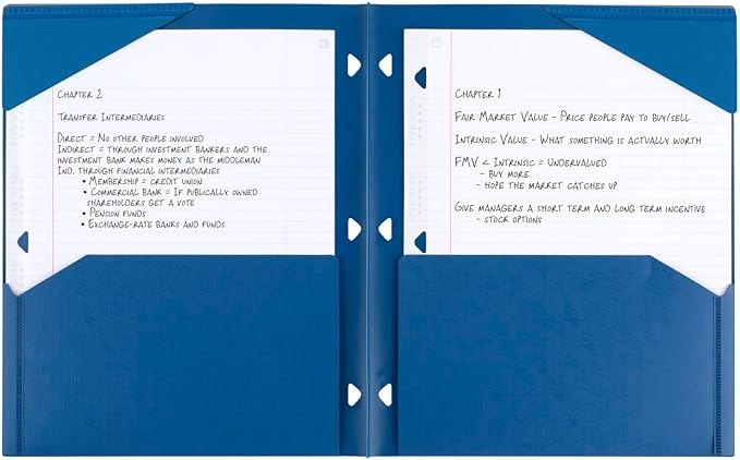 Five Star 2-Pocket Folder, Plastic Folder with Stay-Put Tabs, Fits 3 Ring Binder, Holds 8-1/2" x 11" Paper, Blue (333420C-ECM)