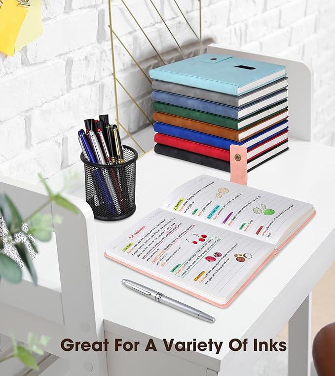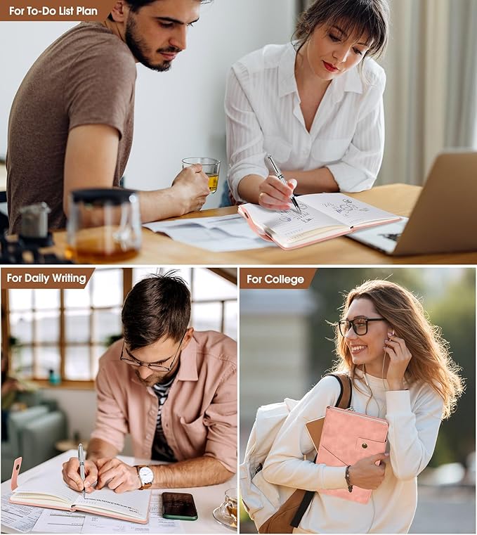 - 【PREMIUM THICK PAPER】:5.9 X 8.4 inch journal notebook with 200 pages 100 gsm lined paper, thicker 30% than normal, this pink notebook is designed to avoid feathering and the paper is ink-proof, suit for most pens, but the wettest pen inks. Archival-quality pages made from acid-free paper-resists damage from light and air, the cream paper is easy on eyes.Let your creation more freedom on the wide ruled journal to write in.
