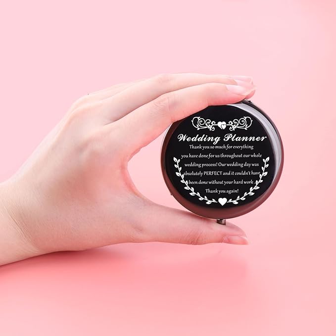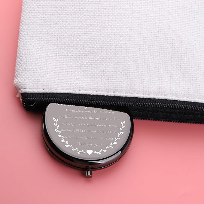 - ❤Perfect Gifts❤The Travel Mirror Engraved With “Thank you so much for everything you have done for us throughout our whole wedding process! Our wedding day was absolutely PERFECT and it couldn't have been done without your hard work . Thank you again!” It will bring back happy memories when she uses it every time.