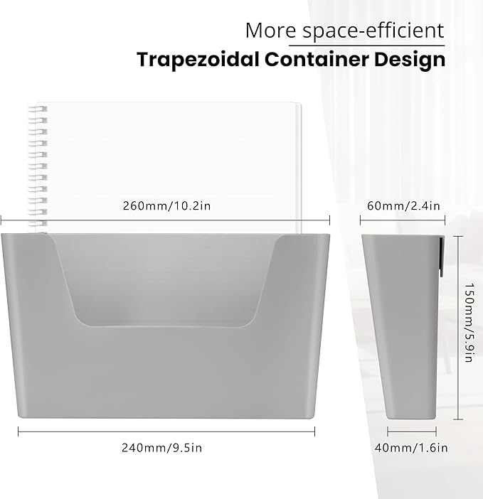 - MULTIFUNCTIONAL WALL FILE ORGANIZER - Can be installed on home office wall to organize envelopes, papers, scissors, mails, documents, letters, bills, living room magazines, bedside items like phones, kindles, tablet, toddler books. Put kitchen refrigerator to hold cook books, weekly menu, coupons/gift cards.