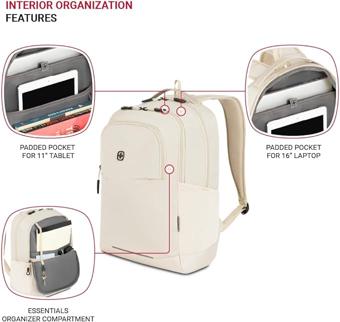 - Exceptional Organization: A must-have work backpack, it features a large main compartment with a 16" laptop pocket with a securing strap, a dedicated tablet pocket, and enough storage for essentials or an extra jacket
