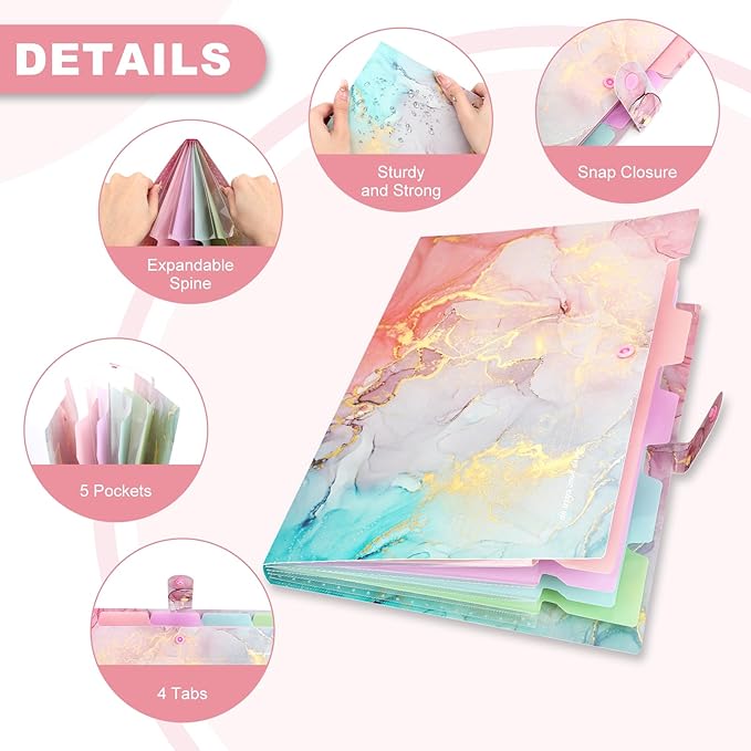 - 【Keep Organized Easily】: This expanding file folder makes sorting and organizing your papers a breeze. 5 pockets with tabs allow you to sort by subject or task, and colorful labels help you search and locate quickly