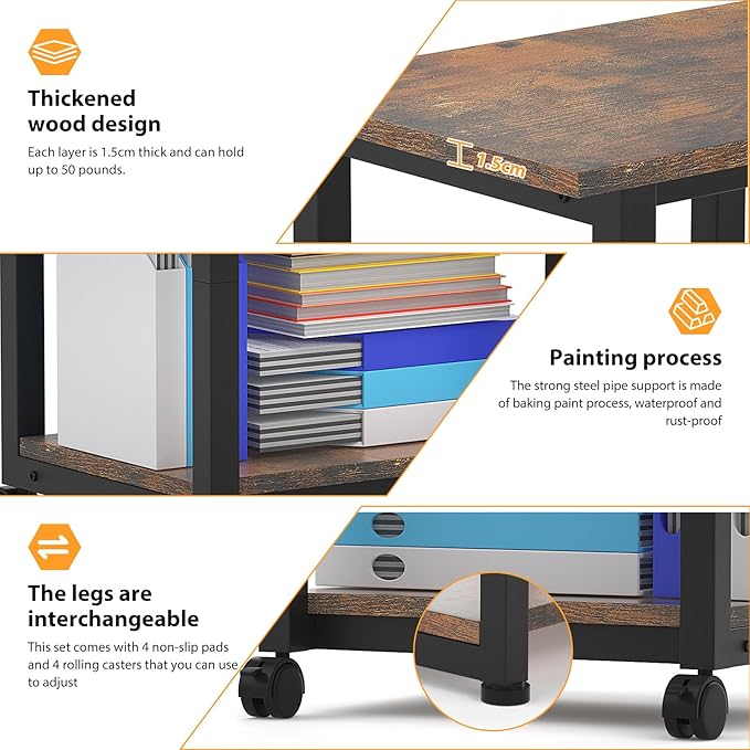- 【Strong & Durable】Each bracket of this printer stand is supported by sturdy steel pipes underneath, rather than simply screwed into the side frame, which helps achieve a sturdy structure and excellent load-bearing capacity. The high-quality retro wooden tabletop is waterproof and wear-resistant, making it a very durable upright table that you can trust for many years.