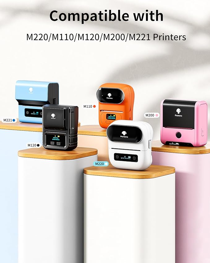 - Strong Compatibility- Phomemo labels are perfectly compatible with Phomemo M110/M120/M150/M200/M220/M221/M250/M260, and compatible with NelkoGlobal M100, Ponek M100, Itari M102 thermal printers, without the hassle of sheet waste, or jams