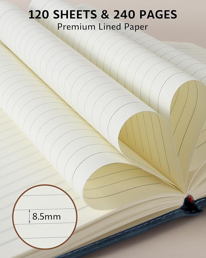 - 240 PAGES OF PREMIUM THICK PAPER: The lined journal has 120 sheets / 240 pages of lined paper, the thick paper is not easy to bleed ink, good for protecting your eyes