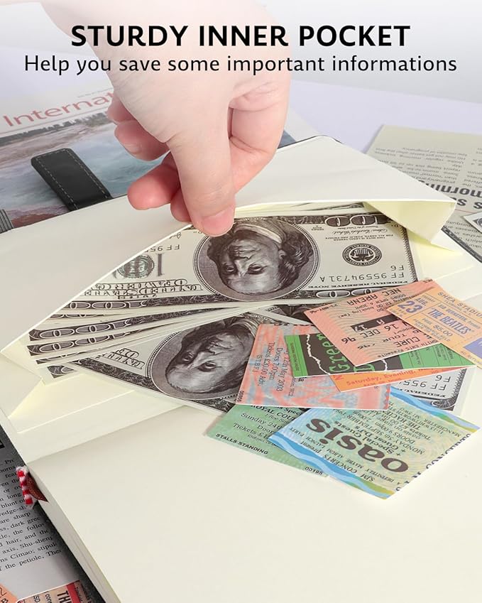 - STORAGE POCKET: The back of the lined notebook comes with a pocket for storing checks or receipts, etc
