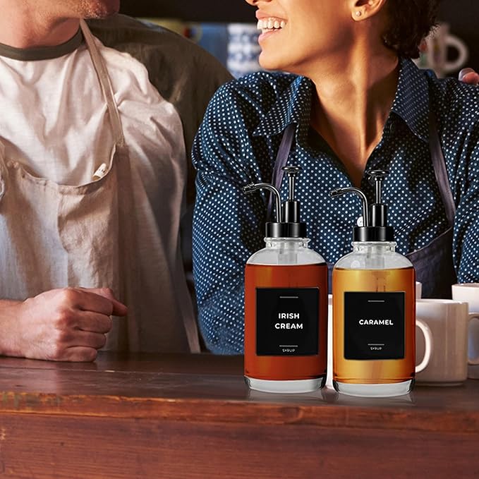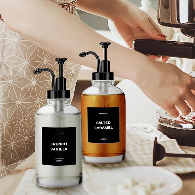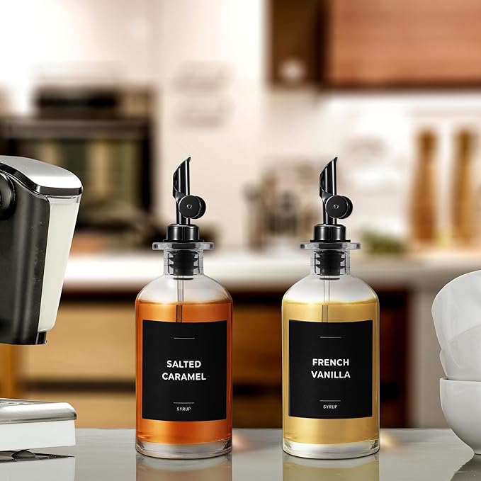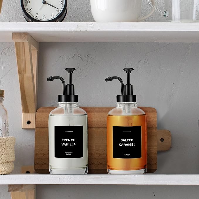 - Coffee Bar Essentials — Coffee syrup dispenser with labels will elevate your coffee station decor.
