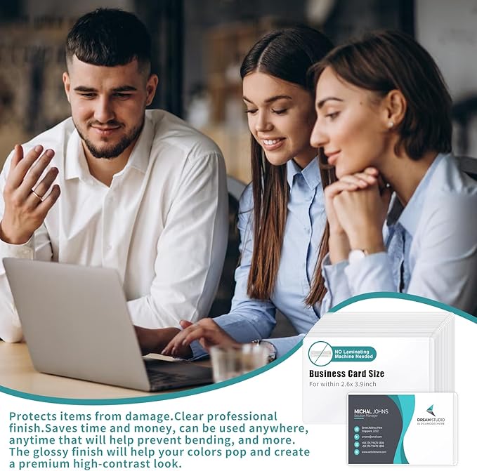 100 Sheets Self Seal Laminating Pouches Business Card Size 2.6x3.9inch Self Adhesive Laminating Sheets Gloss Finish No Laminating Machine Needed for Id Card Small Card