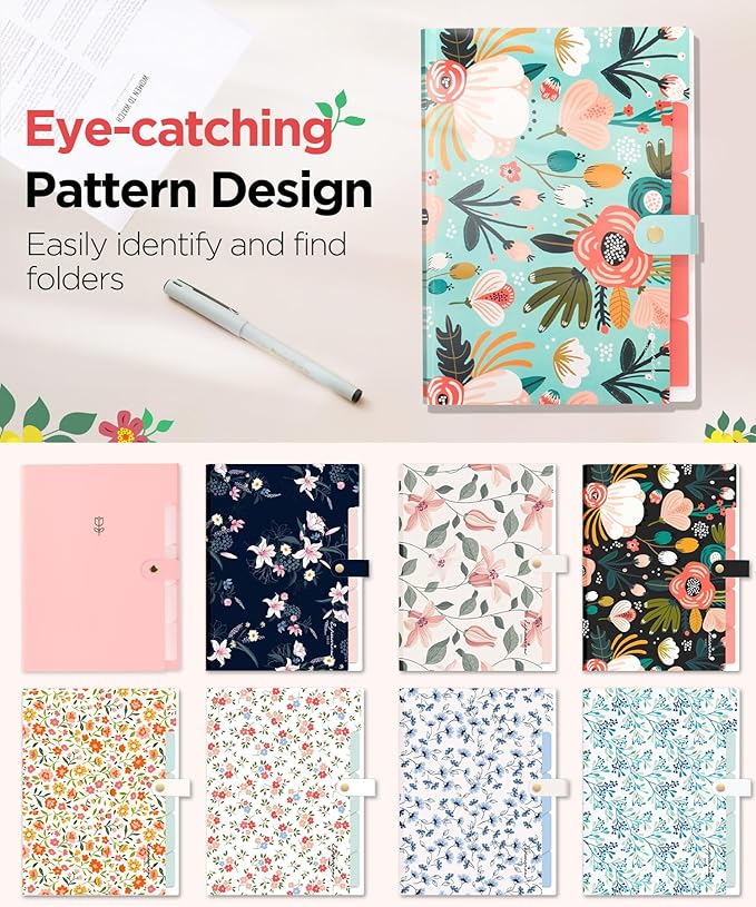 - Eye-catching color: This cute accordion file organizer has a beautiful floral pattern design, functional and aesthetic, adding a touch of personality to the organizing process. Easier to find the needed folders in the drawer.