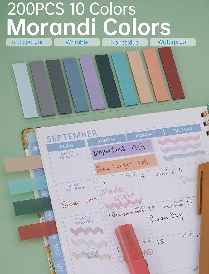 - Comprehensive Note-Taking Set: This kit includes 6 dual-tip highlighters and 6 gel pens in retro colors, 200 Morandi-colored sticky notes in 10 shades, and a convenient transparent storage box.