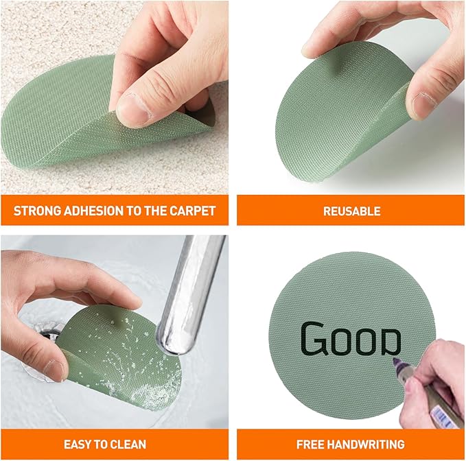 - 【Easy to Apply】These dot markers stick and adhere firmly to carpets without damaging them. They stay securely in place even during vacuum cleaning, eliminating the need for removal. Additionally, their smooth surface is easy to clean.
