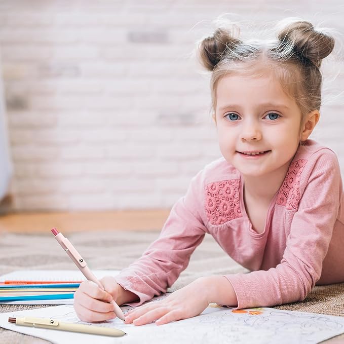 - 5 PCS Macaron Color Retractable Gel Pens Set, Soft-touch ABS & Germany Design & Smooth Black Gel Ink Refill.