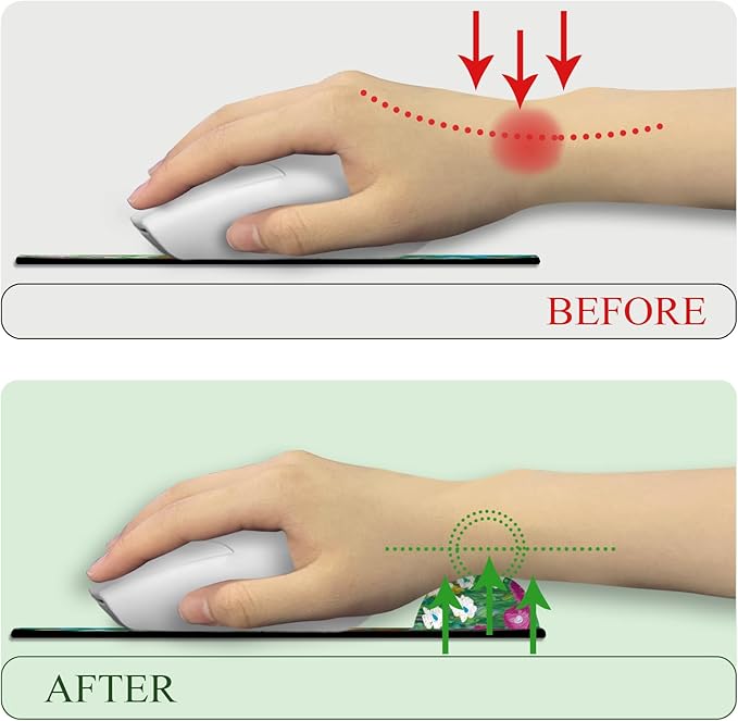 - Great Size and Thickness: With a size of 9.9" X 8.7", this gaming mouse pad fits all types of mice and computers. The 7mm thickness of the desk mouse pad provides optimal support for your wrist, reducing strain and discomfort. The 20mm wrist support adds extra cushioning for improved ergonomics