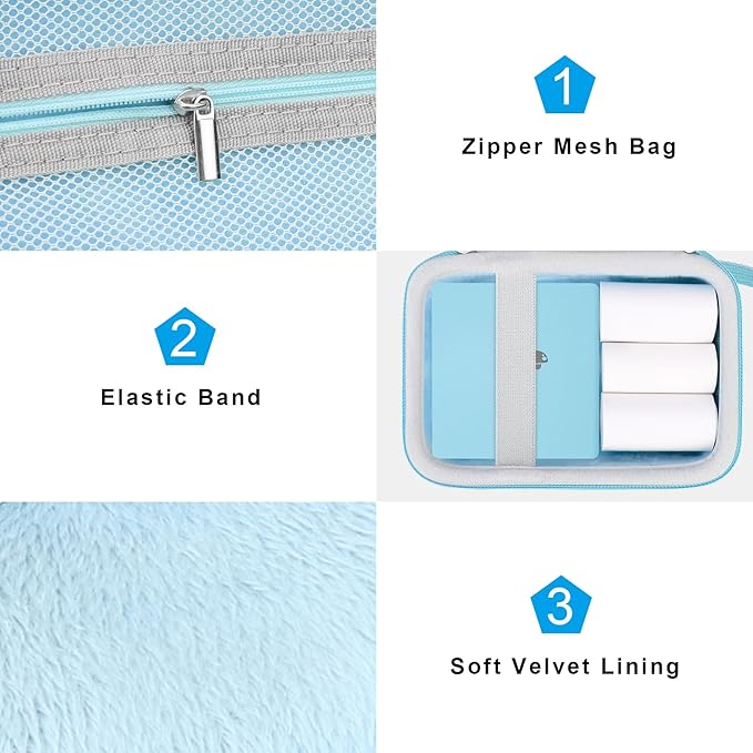 - 【Simple and Practical Design】 The T02 label maker case inner mesh pocket storage space keeps the items well-organized, and can effectively store small label printer accessories. Built-in elastic band can fix T02 label printer and prevent m02 printer from accidentally falling.