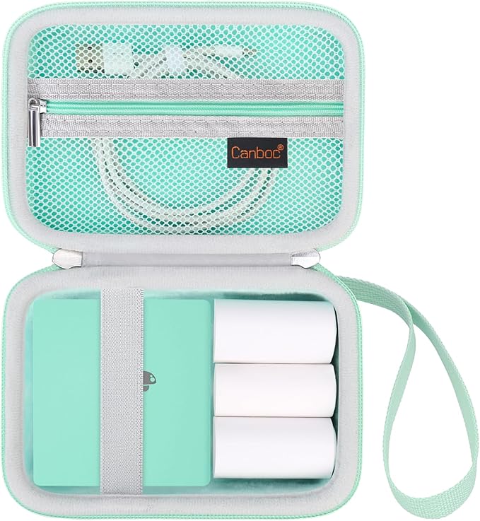 Canboc Case for Memoking/Ponek/Phomemo/Omezizy/Memoqueen T02 Mini Printer Sticker Printer/Phomemo M02 Printer, T02 Portable Thermal Printer Box for Thermal Paper, USB Cable, Green (Case Only)