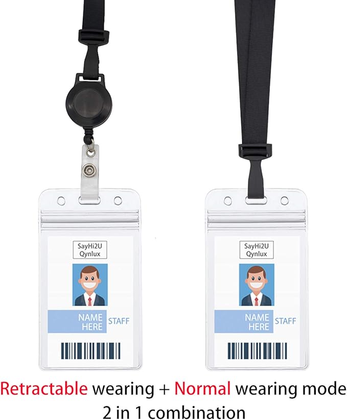 Retractable Safety Breakaway Lanyard on ID Holder, Dual Independent Waterproof Zip Card Holder, Safety Fastener and Adjustable Carabiner (Only Lanyard(2Pcs))
