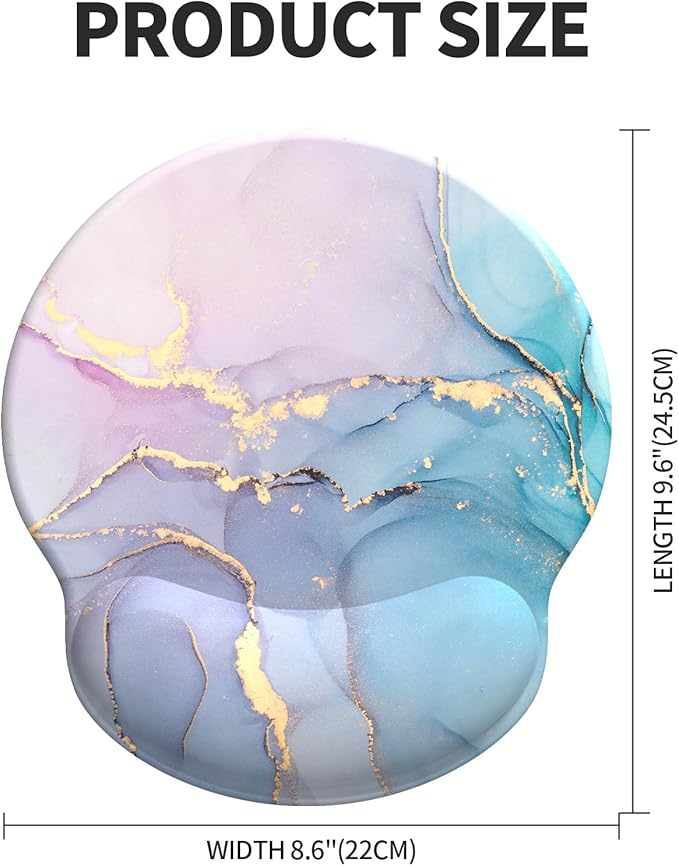 eulps Mouse Pad with Wrist Rest, Comfortable Computer Mousepad with Gel Wrist Support Smooth Surface and Non-Slip PU Base for Pain Relief, Laptop, Office & Home (Cyan Pink Marble)